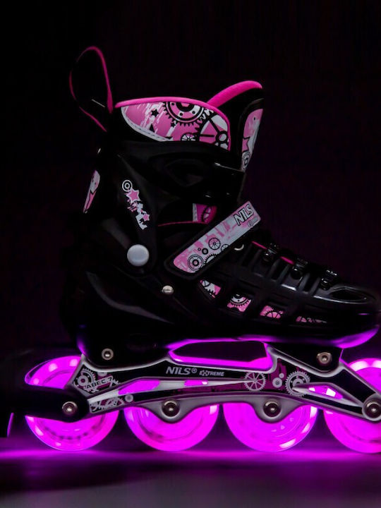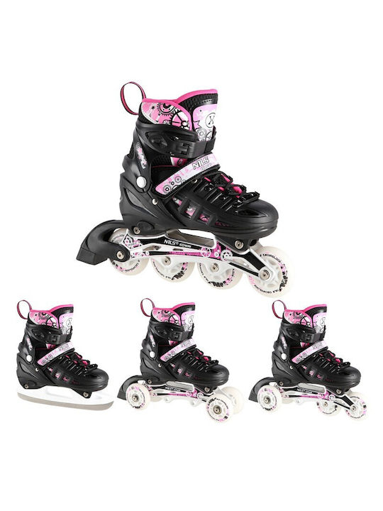 Πατίνια Roller - Παγοπέδιλα Ρυθμιζόμενα 4 Σε 1 Με Led Τροχούς Μαυρο/Ροζ NILS EXTREME NH10905