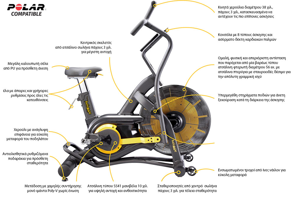Από το σύνολο των οργάνων γυμναστικής, που διατίθενται για την απώλεια βάρους, τα Air Bike είναι τα πιο δημοφιλή. Αποτελούν εξαιρετικές μηχανές καύσης λίπους.