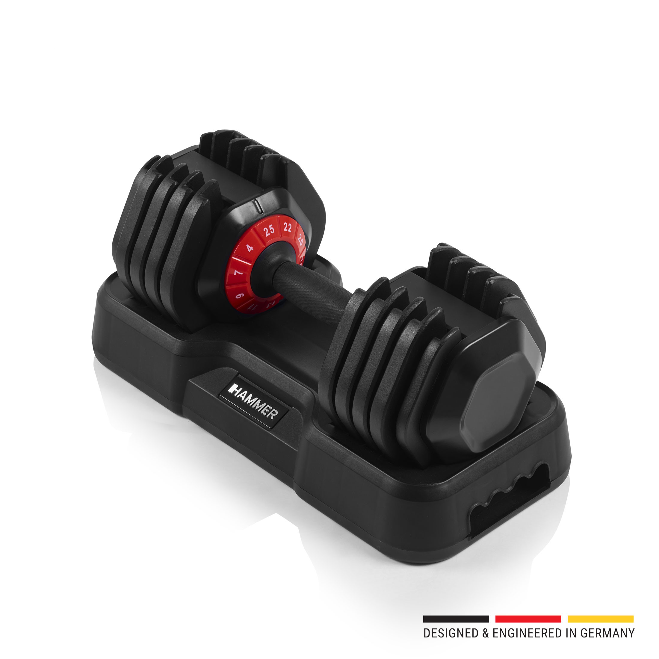 Η βάση Hammer είναι κατασκευασμένη από ανθεκτικό χάλυβα με αντοχή έως 100kg, προσφέροντας σταθερότητα και εύκολη πρόσβαση στους αλτήρες, σε ιδανικό ύψος.