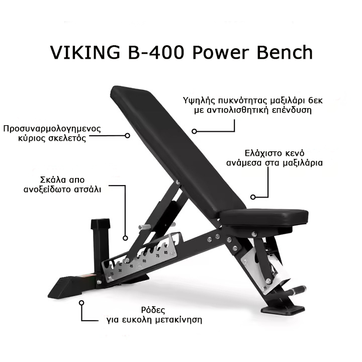 Ο Viking B-400 είναι ένας κορυφαίος πάγκος γυμναστικής που συνδυάζει ανθεκτικότητα επαγγελματικού επιπέδου, πολλαπλές ρυθμίσεις κλίσης και σχεδιασμό για εξοικονόμηση χώρου.