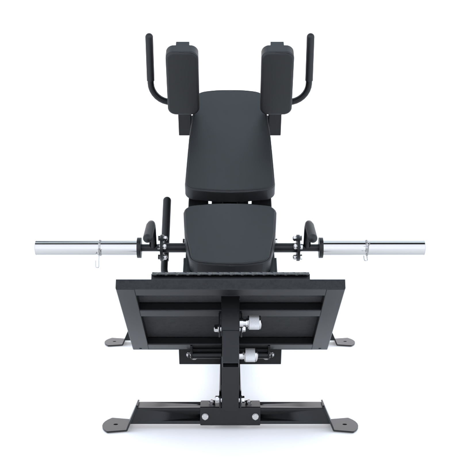 Συνδυάζει πρέσα ποδιών, hack squat και ανύψωση γάμπας, προσφέροντας επαγγελματικά αποτελέσματα σε συμπαγή μορφή.