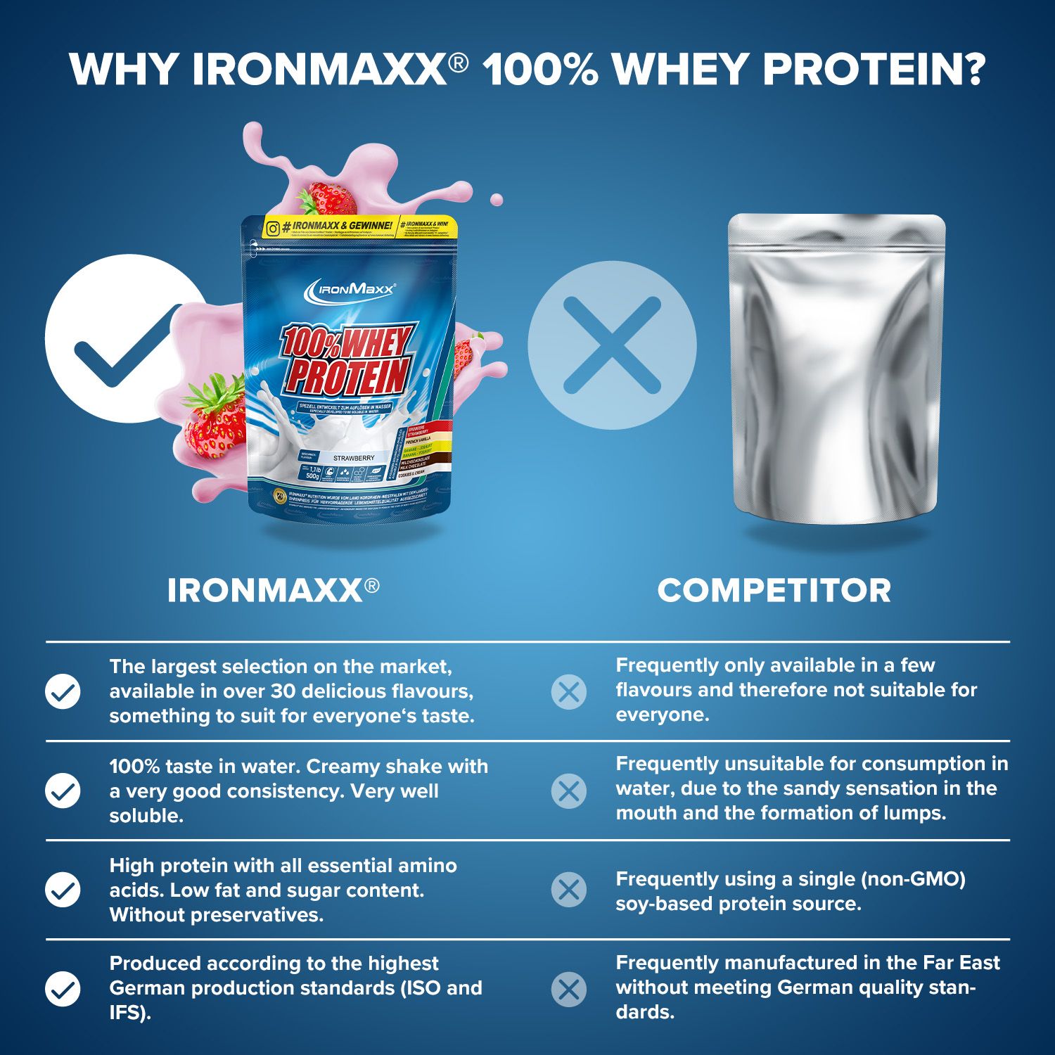 Η IronMaxx® 100% Whey Protein είναι η ιδανική επιλογή για αθλητές και άτομα που αναζητούν υψηλής ποιότητας πρωτεΐνη για μέγιστα αποτελέσματα.