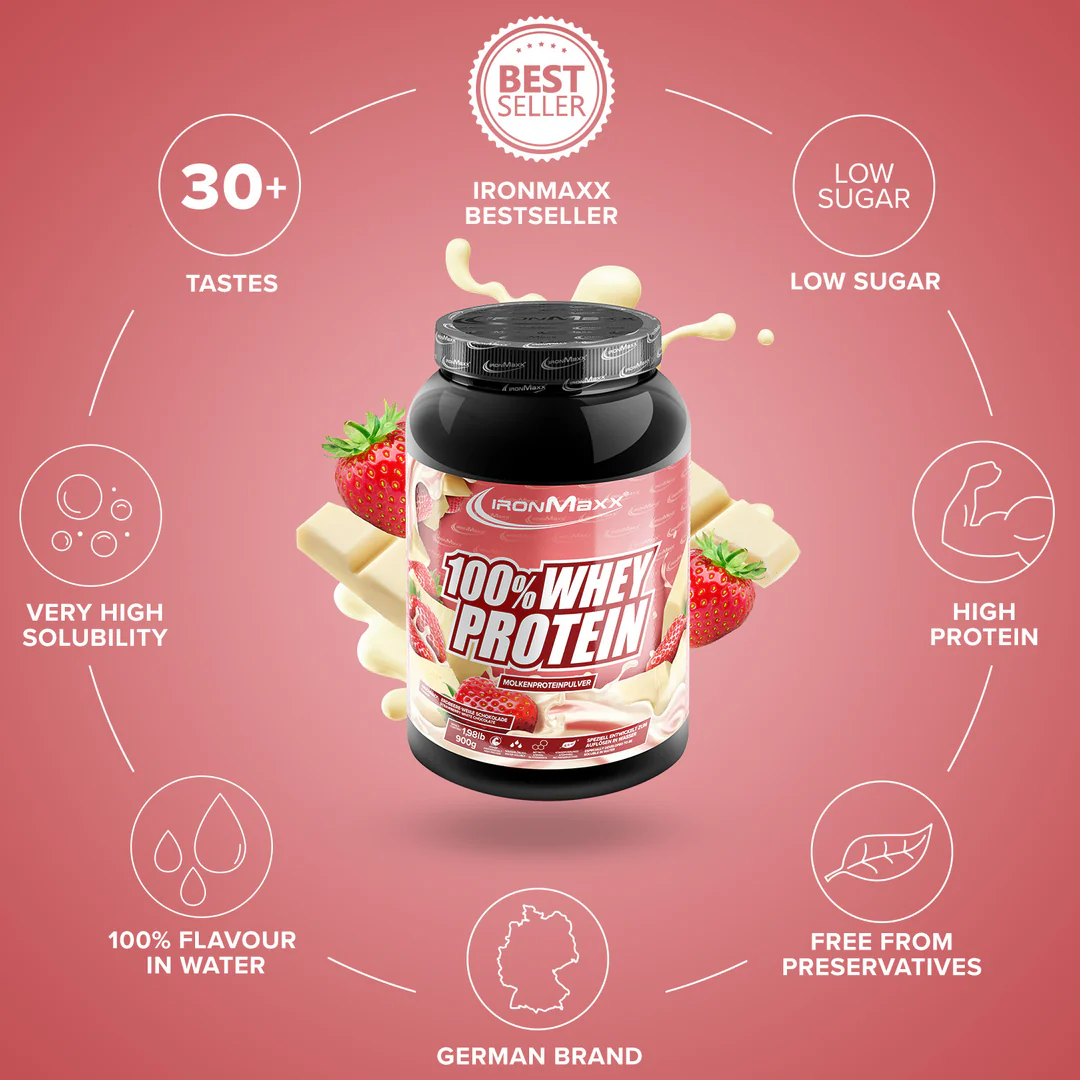 Πρωτεΐνη IronMaxx 100% Whey Protein 900gr White Chocolate-Strawberry